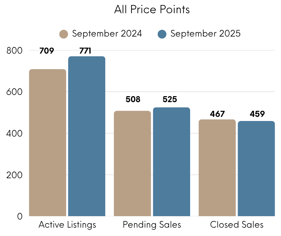 As we enter fall, the market often shifts toward fewer casual shoppers and more serious buyers. With inventory up slightly year-over-year and interest rates stabilizing, conditions remain balanced and healthy for both sides of the transaction.