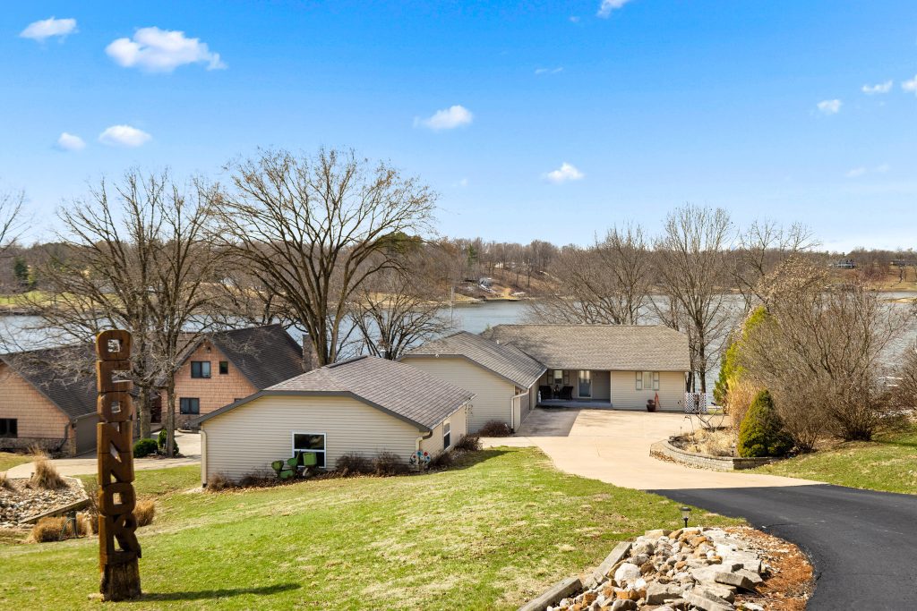 This spacious ranch-style home offers breathtaking water views from the house, deck, and patio area. Plus, with two garages providing a total of four stalls and additional storage above one of them, you’ll have plenty of space for vehicles, lake toys, and more!